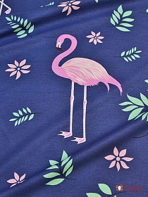 Поплин "Аруба - фламинго" цв.т.синий, (комп), ш.2.2м, хлопок-100%, 110гр/м.кв