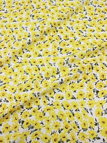 Штапель "Веселина (желтые цветы на молочном)", ш.1.45м, вискоза-100%, 100гр/м.кв