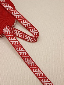 Жак.лента 18мм Славянский оберег "Гребешки" цв.красный