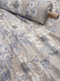 Теплый хлопок "Цветочная веточка на сером с зеленым оттенком", ш.1.48м, хлопок-100%, 150гр/м.кв