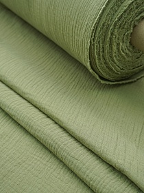 Муслин двухслойный с эффектом жатости цв.Светло-зеленый хаки, ш.1.4м, хлопок-100%, 110гр/м.кв