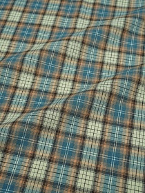 Вареный (стираный) хлопок "Тройная клетка" цв.морская волна/св.лимонный, ш.2.5м, хл-100%, 125гр/м.кв