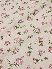 10993 товаровПолулен "Розовые бутоны роз" (на суровом), ВИД2, ш.1.5м, лен-30%, хлопок-70%, 140гр/м.кв