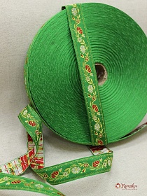 Жак.лента 23мм Красно-белые цветы на зеленом
