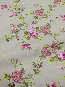 Полулен "Роза прованс на сером", ш.1.5м, лен-30%, хлопок-70%, 135гр/м.кв