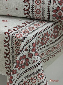 Холст полотенечный жаккард "Валенсия" цв.бежевый/красный, ш.0.5м, лен-30%, хл-70%, 210гр/м.кв