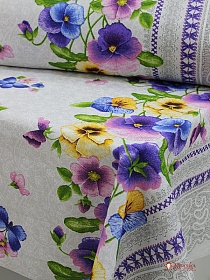 Рогожка "Анютины глазки на светло-сером", ш.1.5м, хлопок-100%, 165гр/м.кв