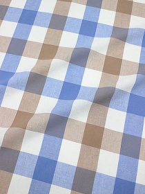 Мерный лоскут (ткнь в отрезах) Вареный (стираный) хлопок "Клетка (3.0*3.0см)" цв.голубой джинс/нуга, ш.2.5м, хл-100%, 115гр/м.кв