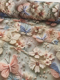 Ткань Дак Цифр.печать "3D - Вязаные бабочки", ш.1.8м, хлопок-65%, п/э-35%, 225гр/м.кв