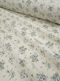 Импорт. хлопок "Голубые букетики роз" цв.голубой/бежево-оливковый, ш.1.45м, хлопок-100%