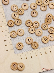 Пуговица светло-коричневое дерево,15мм, 4 отверстия#018863