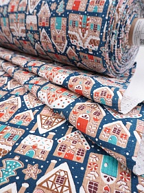 10851 товаровВафельное полотно "Пряничные домики" цв.морская волна, ш.1.5м, хлопок-100%, 165гр/м.кв