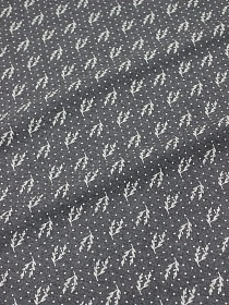 Теплый хлопок "Набойка-веточки с горошком" цв.т.серый меланж, ш.1.5м, хл-60%, п/э-40%, 150гр/м.кв
