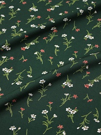 Штапель Премиум "Маленькие цветочные веточки на темно-зеленом", ш.1.45м, вискоза-100%, 120гр/м.кв