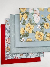 Хлопколен "Мелкие голубые цветочки с веточками на бордово-малиновом", ш.1.5м, лен-20%, хлопок-80%