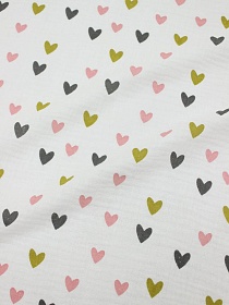 Муслин двухслойный с эф.жатости "Разноцветные сердечки" цв.белый, СОРТ2, ш.1.35м, хл-100%