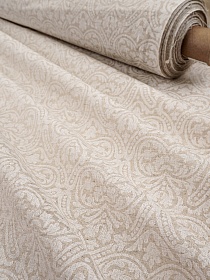 10254 товаровМерный лоскут Полулен "Белый орнамент - винтажный эффект" (на суровом), ш.1.5м, лен-30%, хлопок-70%, 155гр/м.кв