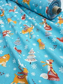 Рогожка "Зимняя сказка" цв.пыльно-бирюзовый, СОРТ2, ш.1.5м, хлопок-100%, 180гр/м.кв