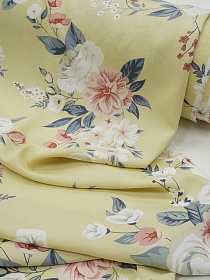 Штапель "Цветочная элегия" цв.соломенно-желтый, СОРТ2, ш.1.45м, вискоза-100%, 100гр/м.кв
