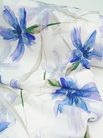 Штапель Премиум (Digital) "Жанэль (синие цветы)" цв.белый, СОРТ2, ш.1.45м, вискоза-100%, 105гр/м.кв