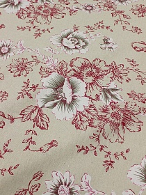 Полулен "Орхидеи - розовые цветы" (на суровом), СОРТ2, ш.1.5м, лен-30%, хлопок-70%, 140гр/м.кв