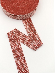 Лента тканая для поясов, 50мм Красный орнамент на суровом, рис.9541