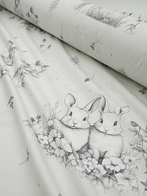 Бязь "Кролики с клевером" цв.св.бежево-серый, СОРТ2, ш.1.5м, хлопок-100%, 135гр/м.кв