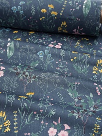 Сатин "Ароматное лето" цв.т.серо-синий, СОРТ2, ш.1.6м, хлопок-100%, 110гр/м.кв