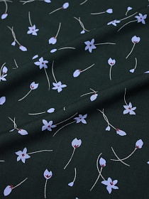 Брак(цена снижена) Штапель Премиум "Цветочное дыхание (голубые цветы) на темно-зеленом", ш.1.44м