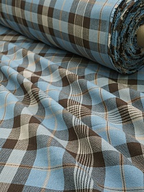 Фуле "Клетка" цв.сине-голубой/т.коричневый, СОРТ2, ш.1.45м, хлопок-100%, 160гр/м.кв