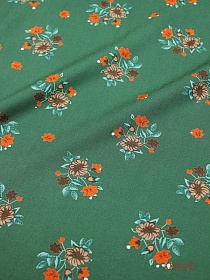 БРАК (цена снижена) Штапель "Коричнево-алые букетики на винтажно-зеленом", ш.1.44м, вискоза-100%