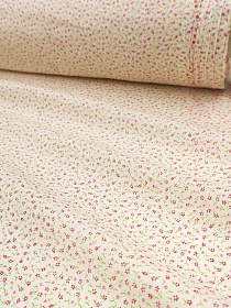 Импорт. хлопок (ситец) "Очень мелкие малиновые цветы на молочном", СОРТ2, ш.1.55м, хлопок-100%, 80гр/м.кв