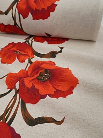 Полулен "Крупные маки по кайме" (на суровом), СОРТ2, ш.1.5м, хлопок-70%, лен-30%, 140гр/м.кв