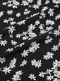 Мерный лоскут (ткань в отрезах) - Штапель "Жасминовые цветочки на черном", ш.1.45м, вискоза-100%