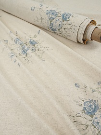10982 товаровПолулен "Поллианна (голубые цветы)" (на суровом), СОРТ2, ш.1.5м, лен-30%, хлопок-70%, 147гр/м.кв