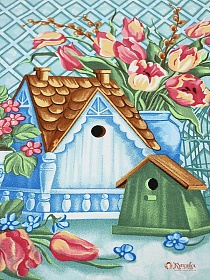 10916 товаровМерный лоскут Дорожка "Пасхальный домик", ш.0.5м, хлопок-100%, 228гр/м.кв, раппорт 63.5см