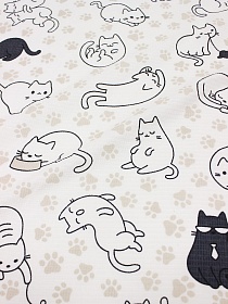 Мерный лоскут Вафельное полотно (холст) "Котики", ш.0.5м, хлопок-100%, 165гр/м.кв