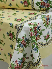 11013 товаровМерный лоскут (ткань в отрезах) Рогожка "Царица цветов-букеты по кайме" цв.крем-брюле ш.1.5м хл-100%