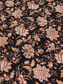Мерный лоскут Плательный хлопок с микроворсом "Элиза" (бордово-коричневые цветы на бежевом), ш.1.45м, хлопок-100%