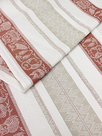 Мерный лоскут Холст полотенечный "Мятные/бордовые/терракотовые полосы", ш.0.5м, лен-30%, хл-70%, 140гр/м.кв