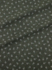 10840 товаровМерный лоскут Плательный хлопок "Мелкие ромашки на т.зеленом хаки меланже", ш.1.45м, хл-80%, п/э-20%, 150гр/м.кв