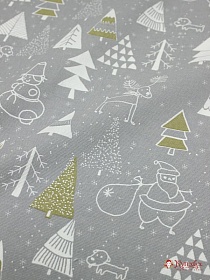 10794 товаровМерный лоскут (ткань в отрезах) Рогожка "Новогодние чудеса на сером" цв.оливковый, СОРТ2, ш.1.5м, хлопок-100%, 180гр/м.кв