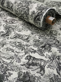 Интерьерный хлопок "Туаль де Жуи - Дикий мир" цв.черный, ш.1.5м, хлопок-100%, 245гр/м.кв