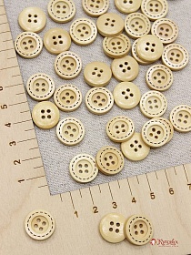10921 товаровПуговица с штрихами по кругу светло-бежевое дерево,15мм, 4 отверстия