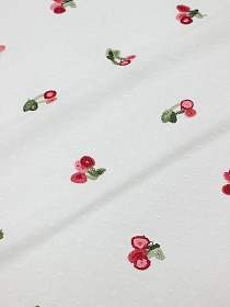Мерный лоскут (ткань в отрезах) - Фактурный хлопок с вышивкой "Вишенки", ш.1.5м, бат, хл.-100%
