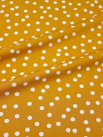 Мерный лоскут (ткань в отрезах) Штапель "Россыпь белого гороха (7мм)" цв.горчично-оливковый, ш.1.42м, вискоза-100%, 90гр/м.кв