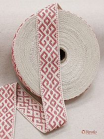 Лента тканая для поясов, 50мм Красный узор на суровом
