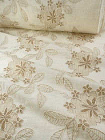 Вышитая ткань "Цветочный венец" цв.бежево-кофейный, ш.1.32м, хлопок-100%, 170гр/м.кв