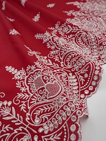 Вышитая ткань "Цветочный венец" цв.красный, ш.1.32м, хлопок-100%, 170гр/м.кв