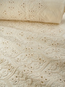 Вышитая ткань "Узорный сказ" цв.кремовый, ш.1.45м (вышит.часть1.27м), хлопок-100%, 230гр/м.кв